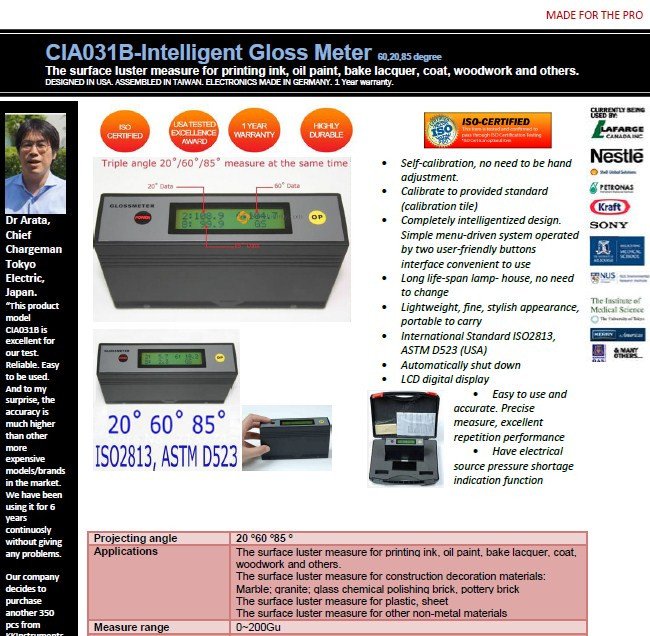 CIA031B-Intelligent Gloss Meter 60,20,85 degree