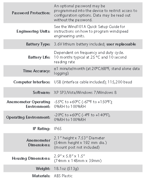 Complete Wind Speed Data Logging System. Includes Pulse101A Data Logger, Weather Proof Enclosure, 3-Cup Anemometer, and Software and Interface Cable Package.